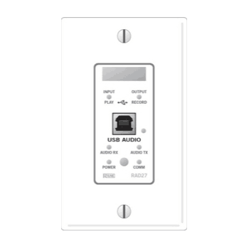 輸入/播放和輸出/錄制信號存在和過載指示燈提供方便“是計算機發送USB音頻?”在壁板故障排除幫助。專用的藍色連接指示燈亮起時,計算機操作系統識別RAD27作為聲卡。當與任何HAL使用,連接的指標是可讀的,可編程的鹵素燈軟件。這使得在HAL系統操作,一旦USB音頻電纜插入,如降低屏幕和轉彎通過以太網控制命令或觸點閉合投影機。