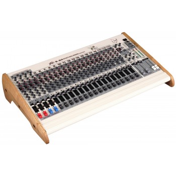 所有的通道都有兩段均衡,可選擇的啞音和推子后監聽1和監聽2送出。前18通道,可以添加系統效果器。 LED表頭顯示在現場的信號和通道的狀態。麥克風前級使用了精選的低噪聲的晶體管電路
