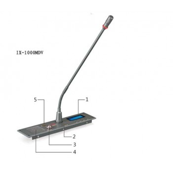 1顯示屏:顯示即時(shí)系統(tǒng)狀態(tài) 2 ABSTAIN棄權(quán)按鍵:表決時(shí)按該按鍵表示投棄權(quán)票 3 OBJECTION反對按鍵當(dāng)系統(tǒng)處在表決過程,按該按鍵表示投反對票 4 APPROVE贊成按鍵當(dāng)系統(tǒng)處在表決過程,按該按鍵表示投贊成票 5 MIC/ON本單元MIC開關(guān)按鍵 6揚(yáng)聲器音量調(diào)節(jié) 7揚(yáng)聲器 8耳機(jī)監(jiān)聽