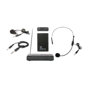 接收器(VESR)射頻和音頻指示器1/4“輸出拉桿天線耐用的塑料外殼機身包(MBP18)VHF話筒/線路開啟/關閉/待機開關運行在2節AA電池(約8小時)外形尺寸:4.14”× 2.6“×0.91”(105毫米高x65毫米寬x23毫米D)重量:2.7盎司(77克)耳機麥克風(HS13-UBK)心形拾音模式9.68毫米電容元件37“(94厘米)電纜有3.5mm螺紋電纜擋風玻璃