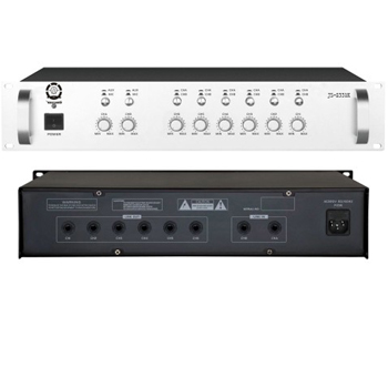 2路信號輸入,輸入模式可通過改變增益切換為話筒(MIC)輸入或線路輸入,6路音頻輸出,輸出音源有(A、B兩種音源)可任意切換組合,每路輸入、輸出都設有獨立的信號放大,互不干擾;,每路輸入、輸出都設有獨立音量調節;操作簡單方便;2U標準機箱設計,鋁合金面板,美觀實用。箱體尺寸485*88*340mm,電源功耗為15W