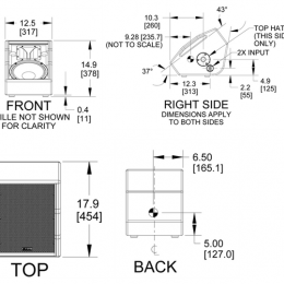 換能器: 低頻 - 1x10英寸錐盆;高頻 – 1x1英寸開口,1.75英寸音圈壓縮驅(qū)動
