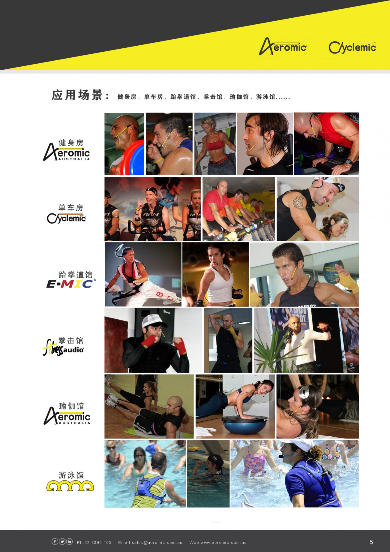 Aeromic被譽為“全球第一運動話筒品牌,”提供一系列麥克風和音響設備,用于健身俱樂部音響系統或獨立健身教練的便攜式音響系統。aeromic被認定為“戰勝汗水的最佳選擇”,是澳大利亞行業標準的防汗健身教練耳機話筒,并在澳大利亞純手工制造。自成立以來,全球已售出50000多個aeromic話筒!