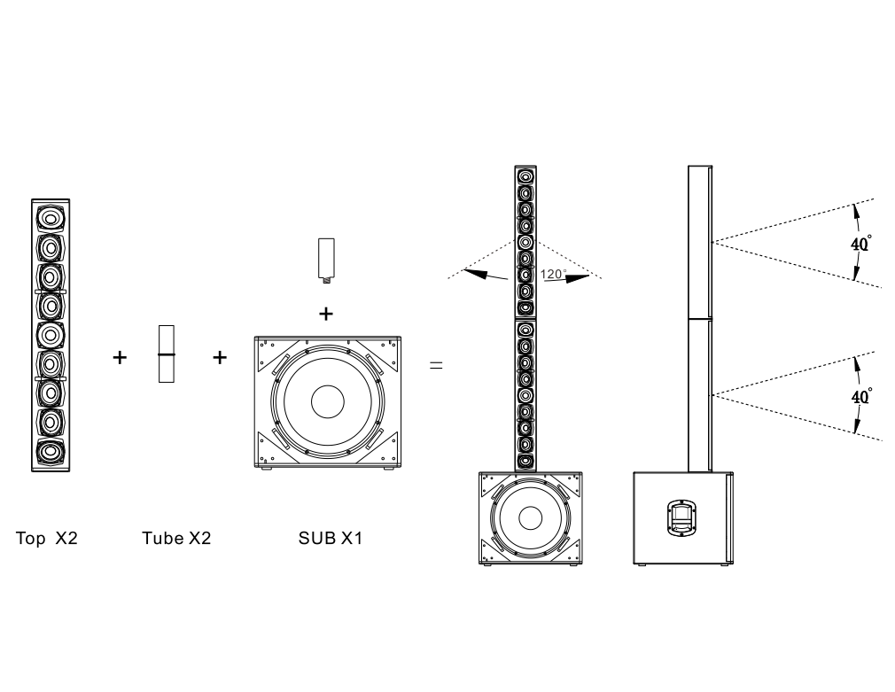1.音柱的喇叭均為一左一右方向分布,覆蓋面更廣,水平覆蓋角度達到120度;