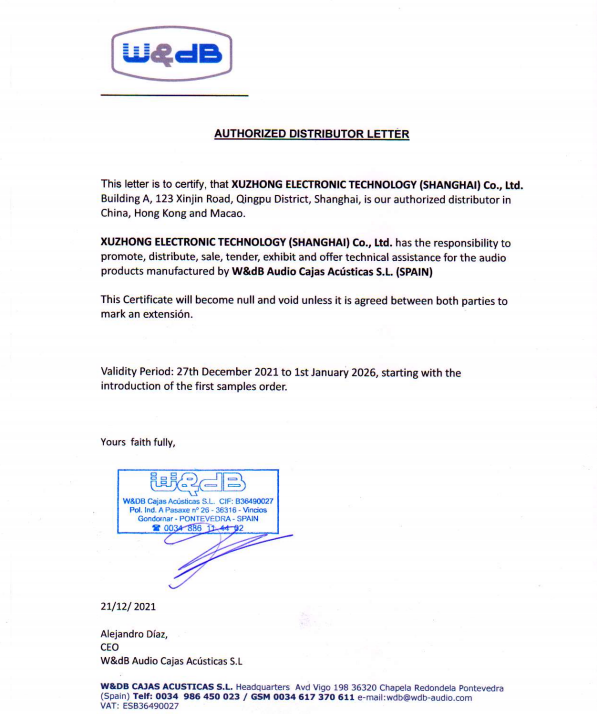 亞歷杭德羅·迪亞茲·洛佩斯(Alejandro Díaz López)被眾多歐洲頂級品牌奉為“教父”級人物。尤其在大型巡演系統的研發中,亞歷杭德羅(Alejandro)總能給出意想不到的建議。經過亞歷杭德羅之手指導過的音響系統不計其數,包括德國、英國、西班牙在內的很多知名品牌。W&dB對聲音的極致追求,不斷的技術創新,在世界范圍內獲得了多項技術專利。W&dB擁有無可比擬的藝術表現力,多位國際音樂大師對W&dB更是青睞有加,這其中包括三項格萊美獎最佳音響工程師Pichon Dal Pont。