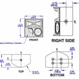 考慮美觀因素,有泡沫襯墊的網罩遮住驅動單元。音箱側面設有安裝點,可采用支架配件進行安裝。其他安裝點接受OmniMount® 30.0 Series支架或類似支架安裝。標準顏色有黑色與白色,可定制其他顏色。
