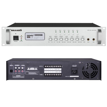 內置MP3解碼播放器與FM收音機播放器,可自由切換播放模式;支持U盤及SD卡存儲歌曲,更換歌曲方便;配帶遙控,方便操作;采用先進高效功率放大電路,設有2路話筒輸入,3路線路輸入,1路輔助輸出,設有6 路分區選擇輸出,帶鐘聲提示。電壓輸出為70V/100V,定阻輸出為4-16Ω,輸出功率為180W,輸出頻響范圍為100~16KHz;設有6 路分區獨立控制輸出,每路輸入音量可獨立控制,帶有高低音音量調節;話筒1設為最高優先功能,自動抑制其他輸入信號;設備設有異常工作保護警告功能,當輸入信號過大、負載過重、溫度過高、線路短路時,對應的指示燈提示,有極高的可靠性。 2U標準機箱設計,鋁合金面板,美觀實用。箱體尺寸485*88*340mm,電源功耗為306W