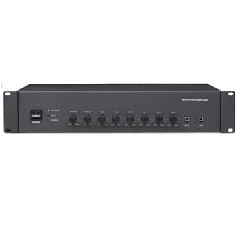 采用先進高效功率放大電路,設有2路話筒輸入,3路線路輸入,1路輔助輸出, 電壓輸出為70V/100V,定阻輸出為4-16Ω,輸出功率為240W,輸出頻響范圍為100~16KHz;每路輸入音量可獨立控制,帶有高低音音量調節;話筒1設為最高優先功能,自動抑制其他輸入信號;設備設有異常工作保護警告功能,當輸入信號過大、負載過重、溫度過高、線路短路時,對應的指示燈提示,有極高的可靠性。 2U標準機箱設計,黑色鐵面板,美觀實用。箱體尺寸485*88*340mm,電源功耗為408W