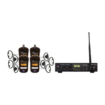 ALS-RMBPR-4臺式套裝包括:1 AS-TXRM桌面發射器,4 AS-TVBPR接收器,2 AS-DCBPTR充電器,和4套耳杯。 96個可選頻道耳罩的單向耳機電池指示燈充電設備的選擇:AS-EC1,AS-EC2或AS-EC3其他AS-TVBPR接收器可以單獨