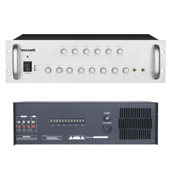 采用先進高效功率放大電路,設有2路話筒輸入,3路線路輸入,1路輔助輸出,設有6 路分區選擇輸出,帶鐘聲提示。 電壓輸出為70V/100V,定阻輸出為4-16Ω,輸出功率為1000W,輸出頻響范圍為100~16KHz;每路輸入音量可獨立控制,帶有高低音音量調節;話筒1設為最高優先功能,自動抑制其他輸入信號;設備設有異常工作保護警告功能,當輸入信號過大、負載過重、溫度過高、線路短路時,對應的指示燈提示,有極高的可靠性。 3U標準機箱設計,鋁合金面板,美觀實用。箱體尺寸485*132*464mm,電源功耗為1700W