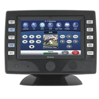 Extron TLP 700TV TouchlinkTM 7" 桌面型觸摸屏設(shè)計(jì)用于在桌面上使用,或采 用 VESA 支架安裝。除了具有 7" 全彩的高分辨率觸摸屏之外,還有 10 個(gè)可 現(xiàn)場(chǎng)貼標(biāo)簽的背光按鍵,提供了擴(kuò)展的控制功能,用以確保關(guān)鍵功能始終 都可用。TLP 700TV 觸摸屏可以把底座移除,并安裝在任何帶可選適配器 的 VESA 標(biāo)準(zhǔn)支架上。