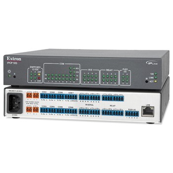Extron IPCP 505 是一款 IP link® 控制處理器,設計用于支持較大型的可配置控制系統(tǒng)。IPCP 505 將以太網(wǎng)連接集成至視音頻系統(tǒng),使用戶能夠?qū)︼@示器和切換器等視音頻設備進行遠程控制、監(jiān)視和故障診斷。IPCP 505 控制處理器配備一個高性能的嵌入式 Web 服務器、多個雙向串行端口、繼電器、靈活的輸入/輸出端口以及一個以太網(wǎng)端口,還有 4 個可獨立開關的 12 V 直流電源輸出,是需要對多個設備進行控制的大型視音頻系統(tǒng)應用的理想之選。多個雙向端口對可串行控制的設備如顯示器、切換器和其它視音頻設備提供了同時的雙向控制和監(jiān)視。
