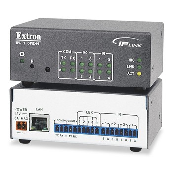 Extron IPL T SFI244 是一款緊湊型以太網控制接口,具有一個內置的高性能 Web 網頁服務器、2 個 RS-232 端口、4 個多用途輸入/輸出端口、4 個紅外端 口和 1 個紅外學習器。IPL T SFI244 設計用于將 IP(Internet 協議)連接集成 到視音頻系統中,使用戶能夠在遠端主動地監視和診斷投影機、平板顯示 器、切換器以及其它產品。