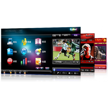雷石是全球第一家將機頂盒應用于KTV點歌設備的廠商。雷石嵌入式點歌系統是基于更安全,更穩定的要求開發完成的一套全自動卡拉OK點歌系統,并已被數千家娛樂場所證實:它比其他點歌產品(如電腦點歌)更加可靠、安全和高效。整個系統全部由連接網絡的--機頂盒自動管理,無需碟機也無需人員操作,極大地提高經營效率。
