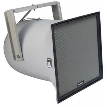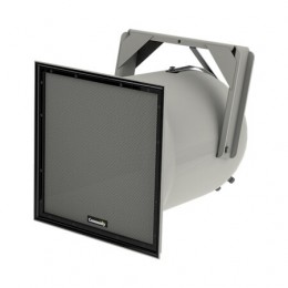 此音箱系統是號角負載、三分頻全頻三軸設計,低音號角上有兩個12” 防潮鐵磁流冷卻低音單元,低音號角里面的玻璃纖維號角上分別安裝了一個2”開口鐵磁流冷卻中頻無金屬振膜壓縮驅動和一個1英寸高頻鈦振膜驅動。驅動連接到分頻頻率600Hz至3.5kHz的分頻器,并使用高電流系數電阻器保護過流電路。輸入連接是一根16-2 12-英尺(4m)SJOW線纜,帶有剝線端。音箱箱體是雙層密封的淡灰色玻璃纖維,3層耐候型網罩。鋼制網罩粉末涂層經過了專利的富鋅環氧雙層粉末涂層過程,顏色為淺灰與箱體顏色相搭配。該系統是IP55W的IEC529 IP級別,向下投射角最小值為5°,還有5個1/2 – 13螺紋安裝點。系統的振幅響應是70Hz至10kHz(+/-4dB),輸入能力是40V RMS,在1m/2V和4歐的阻抗下靈敏度為106dB。從1250Hz至10kHz的標稱覆蓋是40°-70°H×40°V。音箱的尺寸為24.75英寸(629mm)H×24.75英寸(629mm)W×30.75英寸(781mm)D,重量為96lbs(43.5kg)。